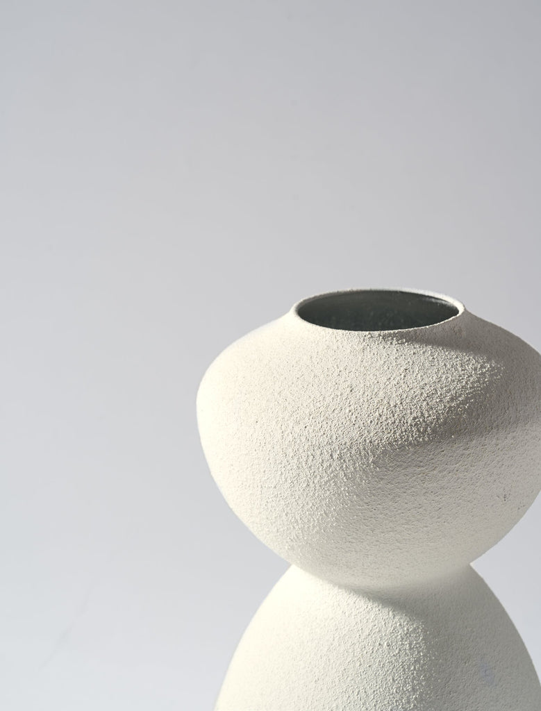 A unique, modern vase that adds interest to your home. Made from iron, this vase has a textured finish for a rustic yet contemporary feel.